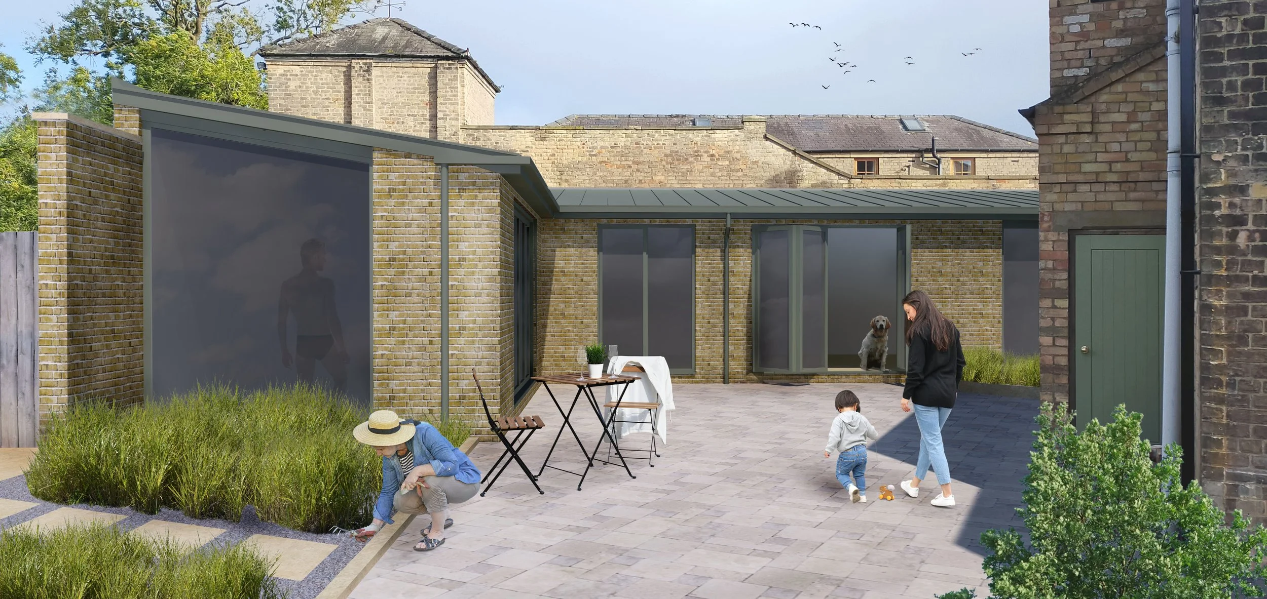 This project primarily involves alterations and extension to an existing Edwardian cottage dwelling. The proposed works call for the existing unsympathetic workshop and garage to be altered and converted to create a new connected dining / living area and accompanying home GYM and training swimming pool. These new additions are centred around a newly created courtyard area, which benefits direct access from the property and views over the existing landscaped gardens. This new contemporary extension features buff coloured brickwork walls, generous glazing elements and metal standing-seam mono-pitched roofs.